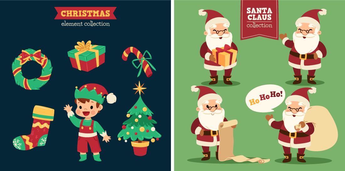 A collection of Christmas themed illustrations I created for the website Freepik, including characters, banners and backgrounds.